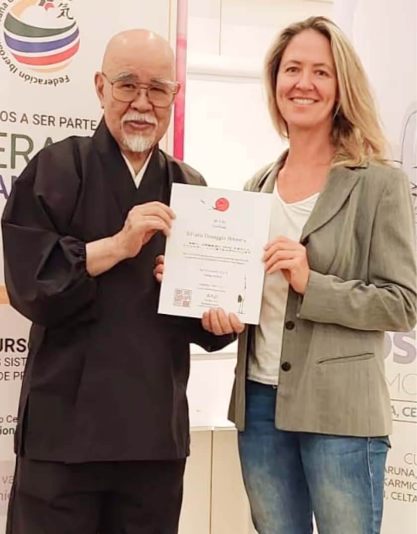 En el año 2023 tuve la maravillosa oportunidad de formarme con el monje budista Inamoto Hyakuten (1940- ) que vino a Chile por primera vez, acreditando todos mis estudios previos y donde volví a tomar los tres niveles más la Maestría (Shinpiden) que me permite tener el honor de enseñar.